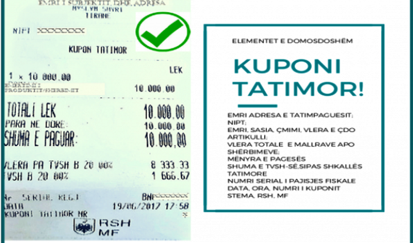 Administrata tatimore sjell në vëmendje këto elementë, që ju të mos bini pre e lëshimit të një kuponi jotatimor nga pajisje fiskale jo të autorizuara. Të tillë kupona janë abuzivë dhe vlejnë vetëm për përfitime abuzive në dëm të interesit tuaj dhe shoqërisë në tërësi.